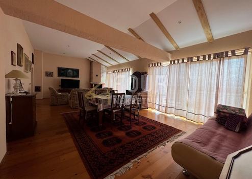 Auf der zweiten Etage gibt es ein Wohnzimmer mit Esszimmer, eine Küche, zwei Schlafzimmer mit eigenem Bad.