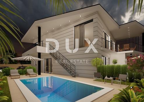 Dieses wunderschöne Doppelhaus ist ein originelles und modernes architektonisches Werk. Es liegt in der Nähe des Meeres, etwa 100 Meter von schönen Stränden entfernt. Im Untergeschoss des Gebäudes befinden sich ein Schlafzimmer mit Bad, eine Toilette, ein Technikraum mit Waschküche und ein multifunktionaler Raum, der eine Taverne, ein Spielzimmer, ein Wellness oder alles andere sein kann, was der Eigentümer wählt. Im Erdgeschoss befinden sich zwei Schlafzimmer, jedes mit eigenem Bad und Zugang zu einer überdachten Terrasse. Im ersten Stock gibt es eine Toilette, einen offenen Raum mit Küche, ein Esszimmer und ein Wohnzimmer, von dem aus man Zugang zu einer überdachten Terrasse hat, von der man über eine Wendeltreppe hinunter in einen schönen Garten mit Schwimmbecken gelangt Pool und eine eingerichtete Liegewiese. Die Anlage verfügt über zwei Parkplätze. Die gesamte Anlage verfügt über Fußbodenheizung, während die Kühlung durch Klimaanlagen erfolgt. Im Gebäude werden hochwertige Materialien in bewährter Qualität verbaut. Eine Alarm- und Videoüberwachung, eine Autoladestation sowie eine Solaranlage auf dem Dach des Gebäudes sind vorbereitet. Architektonisch ansprechende Häuser werden in höchster Qualität gebaut, „schlüsselfertig“ verkauft und mit hochwertiger Ausstattung ausgestattet – Aluminiumschreinerei, Fußbodenheizung und Klimaanlage, beheizte Schwimmbäder, erstklassige italienische Keramik, vor allem -Klasse deutsches Parkett, Sanitärausstattung der Marken Villeroy&Boch, Grohe und Hansgrohe. Das Objekt befindet sich im Mehrwertsteuersystem. Die Fertigstellung wird für Ende 2023 erwartet.