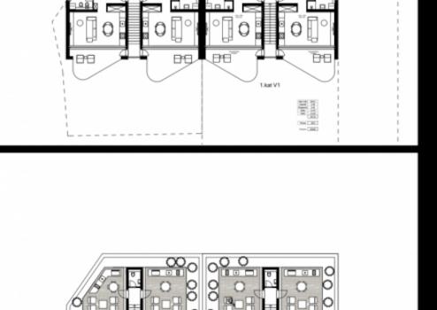 Die Wohnungen bestehen aus 2 Zimmern, Küchen, Wohnzimmer, Badezimmer und jeder Wohnung im Erdgeschoss hat einen Teil des Landbesitzes von ca. 40 m2 bis 150 m2.