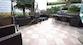 Vom Wohnzimmer aus gelangt man auf eine geräumige Terrasse von 30 m2 mit teilweisem Meerblick.