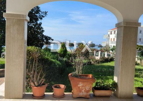 Zum Verkauf steht eine freistehende Luxusvilla am Meer mit Meerblick von allen Ebenen. Die Villa erstreckt sich über zwei Etagen und in der Natur befinden sich zwei großzügige und hochwertige Wohnungen. Die Wohnfläche beträgt ca. 380 m2 und befindet sich auf einem wunderschönen Grundstück von 1191 m2. Der liebevoll angelegte und gepflegte Hof eröffnet die Möglichkeit zum Bau eines Swimmingpools und bietet neben dem schönen Garten auch einen überdachten Bereich mit gemauerter Feuerstelle neben dem Teich für maximalen Genuss mit Familie und Freunden. Bereits vom Erdgeschoss aus hat man einen Panoramablick auf das Meer und die Stadt, und im Erdgeschoss befindet sich eine geräumige und gut ausgestattete Wohnung mit einem offenen Wohnzimmer, einer Küche, einem Esszimmer, einem Flur, zwei Schlafzimmern, einem davon die ein eigenes Badezimmer hat. Das Wohnzimmer führt zu einer überdachten Terrasse mit Blick auf den schönen Garten und das Meer. Im ersten Stock befindet sich eine größere, geräumige Wohnung mit geräumigen Zimmern, bestehend aus einem Flur, einer Toilette, einer Küche und einem großen offenen Wohnzimmer, von dem aus Sie das Meer in Ihrer Handfläche sehen und vom Wohnzimmer aus Zugang haben eine schöne Terrasse. Im zweiten Teil der Wohnung befinden sich zwei Schlafzimmer (eines davon mit Meerblick), ein Arbeitszimmer und ein Badezimmer. Darüber hinaus verfügt die Villa über einen Weinkeller sowie einen großen Heizraum mit einem voll ausgestatteten System für Gas-Fußbodenheizung, Gas-Zentralheizung, Wasserfilter und Klimaanlagen. Eine Video- und Alarmanlage wurde installiert. Die Villa bietet einen überdachten Bereich für zwei Haustiere sowie zusätzlichen Parkplatz. Der Zugang zur Villa ist von zwei Seiten möglich. Es handelt sich um ein sehr hochwertiges und gut erhaltenes Objekt in seltener und begehrter Lage! Der Verkäufer ist eine juristische Person und der Preis enthält die Mehrwertsteuer.