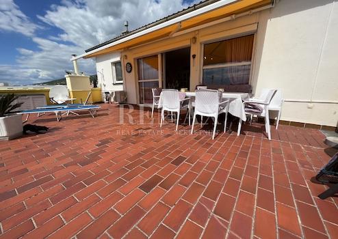 Badezimmer mit Massagewanne, geräumiges Schlafzimmer, Küche mit Speisekammer, großes Esszimmer mit Wohnzimmer, das zu einer großen Terrasse mit wunderschönem Panoramablick auf das Meer führt.