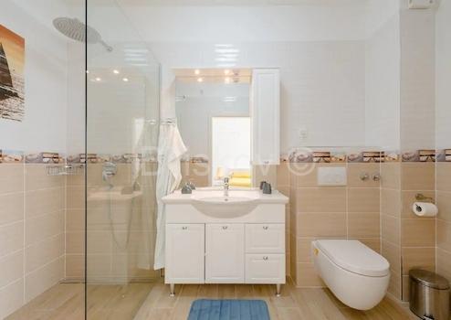 Drei Schlafzimmer, jedes mit eigenem Bad und Balkon mit Meerblick. Sie befinden sich im zweiten Stock.
