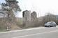 Auf dem Grundstück befinden sich ein Steinturm und mehrere zerstörte Gebäude