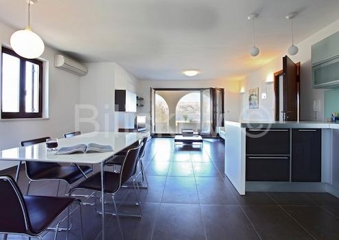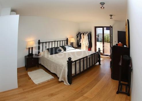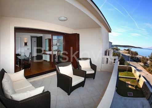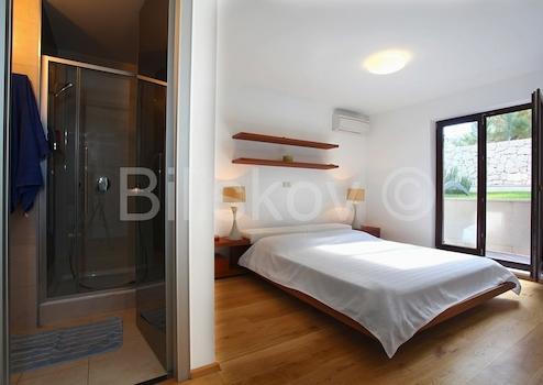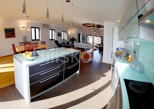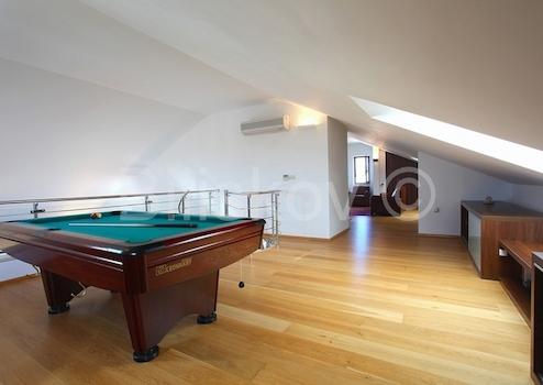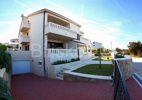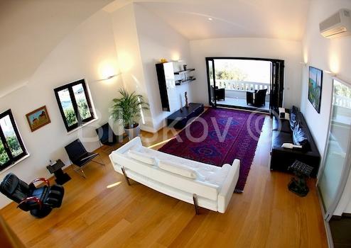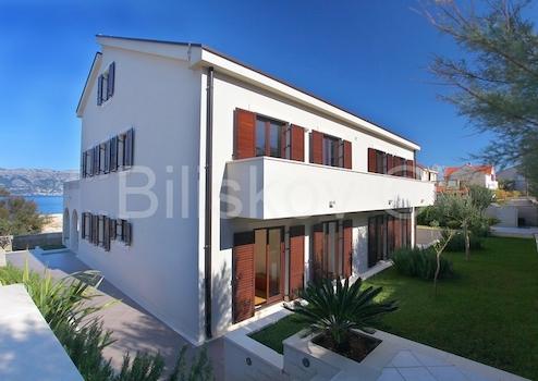 Die Villa hat eine Fläche von 763 m2 und befindet sich auf einem Grundstück von 500 m2. Im Untergeschoss von 278 m2 gibt es einen Parkplatz für 6 Autos, Abstellraum und Fitnessraum. Im Erdgeschoss von 184 m2 befinden sich zwei Apartments mit zwei Schlafzimmern, Balkonen und Terrassen. Im ersten Stock von 207 m2 befindet sich eine wirtschaftliche Wohnung - Küche, Esszimmer, grosses Wohnzimmer, Arbeitszimmer, zwei Schlafzimmer, zwei Badezimmer und Balkone. Auf dem Dachboden von 94 m2 befindet sich eine grosse Halle mit Billard, Bad und Balkon. Die Villa bietet einen Blick auf das Meer, die Riviera Split und Makarska. Die Villa verfügt über einen angelegten und gepflegten Garten.