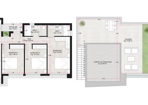Diese wunderschönen Villen verfügen über eine konstruierte Fläche von ca. 166 m² - 185 m² (verschiedene Modelle, inklusive Terrassen) mit