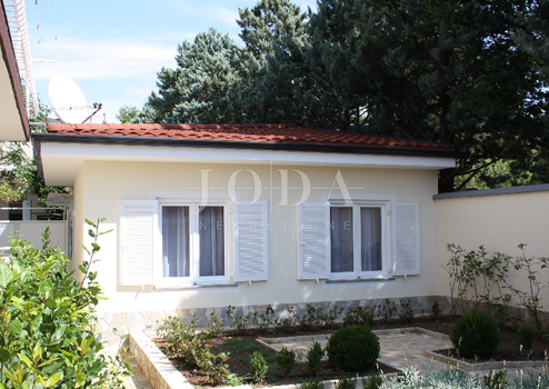 Im Erdgeschoss des Hauses befindet sich auf der Vorderseite eine neu renovierte Eigentümerwohnung mit großer Terrasse und einem Büro für Vermietungsgeschäfte und auf der Gartenrückseite eine modern neu eingerichtete Zweizimmerwohnung (Kategorie mit 4*) mit großer Terrasse, während sich im Garten ein neu renoviertes Studio-Apartment (mit 4* kategorisiert) befindet.
