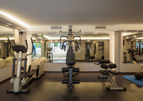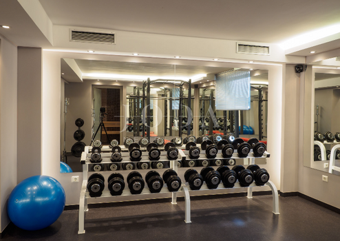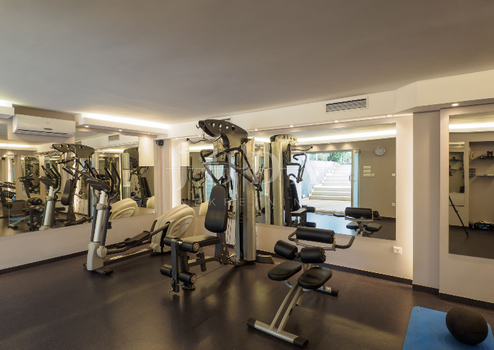 Im Untergeschoss des Hauses befindet sich ein modern eingerichtetes und hervorragend ausgestattetes Fitnessstudio mit Sauna und Hydromassagewanne.