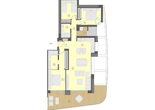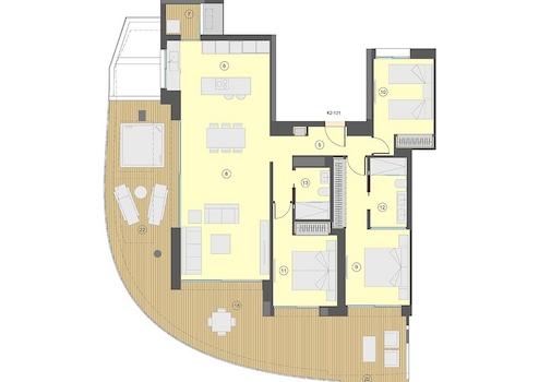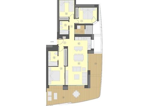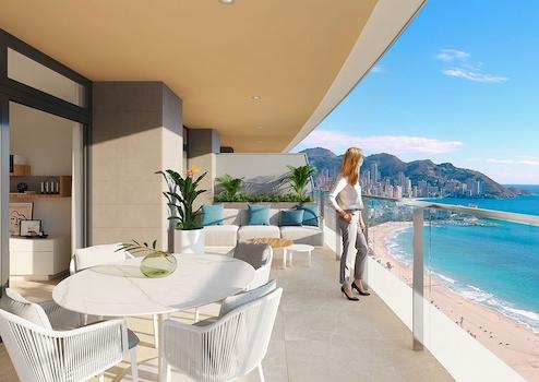 Die Wohnanlage besteht aus einem 30-stöckigen Turm und einem 40-stöckigen Turm und beide sind nach Süden ausgerichtet. Die Wohnungs-Typologien sind sehr vielfältig, Sie können zwischen Excellence-Wohnungen mit 1, 2 oder 3 Schlafzimmern und mit 1 oder 2 Badezimmern und Premium-Wohnungen mit 2, 3 oder 4 Schlafzimmern mit 2 oder 3 Badezimmern wählen. Die Wohnungen bieten ein Design, das maximalen Komfort anstrebt und es Ihnen ermöglicht, das Mittelmeer wie nie zuvor zu genießen. Die Terrassen verfügen über Glasgeländer um die fantastische Aussicht nicht einzuschränken. Diese Wohnanlage soll zu einem neuen Wahrzeichen der Skyline von Benidorm werden.