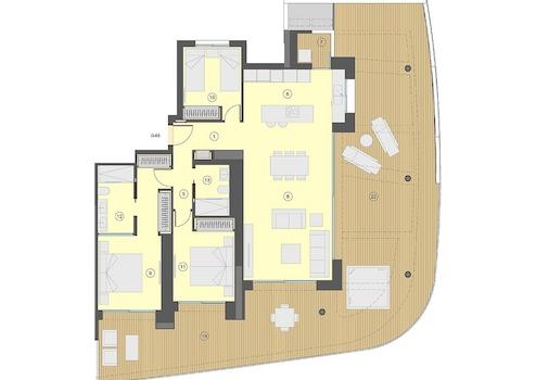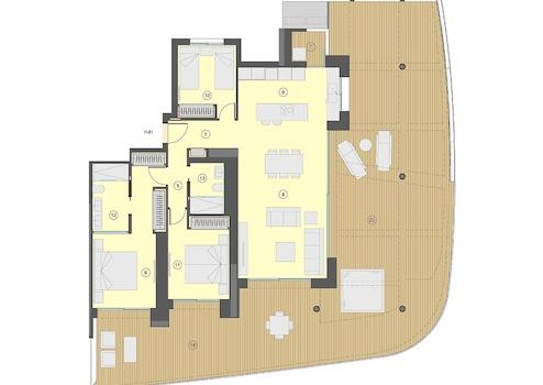 Diese wunderschönen Wohnungen, die alle einen phantastischen Meerblick bieten, verfügen über eine konstruierte Fläche von 130 m² - 320 m² (verschiedene Modelle, inklusive Terrassen) mit