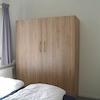 Das Hauptschlafzimmer verfügt über ein Doppelbett und einen geräumigen Kleiderschrank. Ein Drehkippfenster sorgt für gute Belüftung.