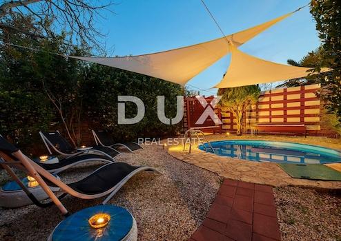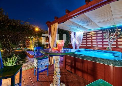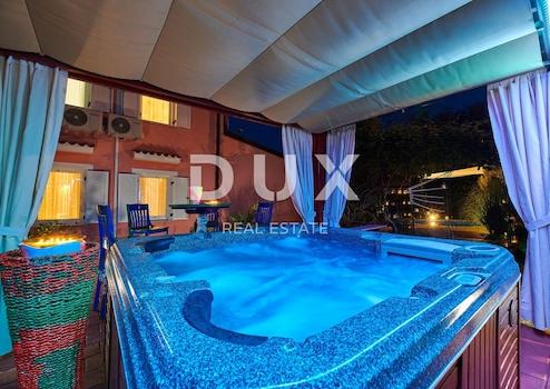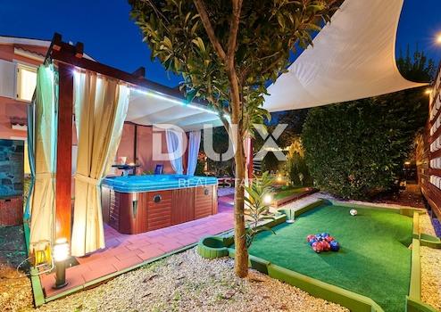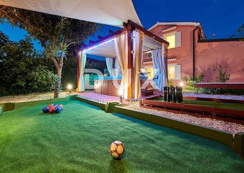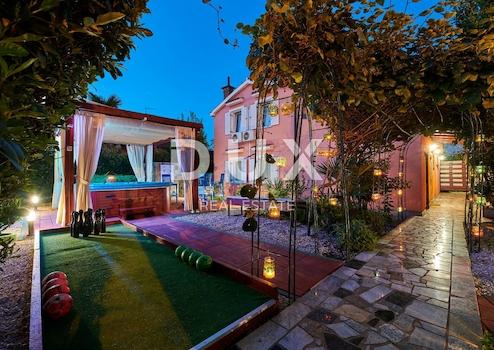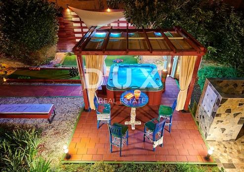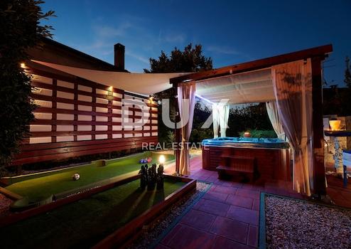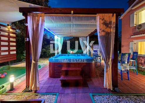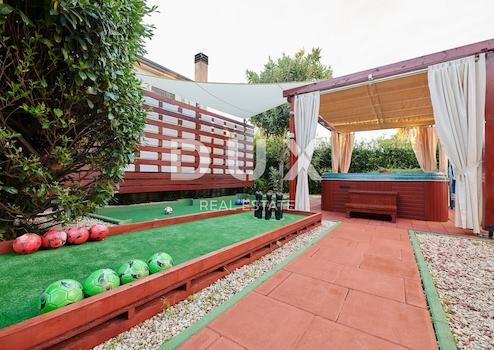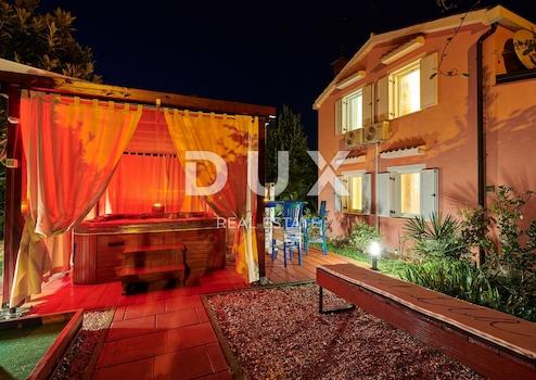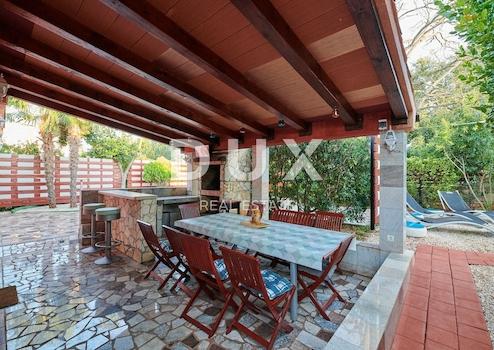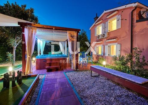 Am Stadtrand von Umag, auf einem Grundstück von 700 m2, befindet sich diese Villa auf zwei Etagen mit einer Gesamtfläche von 168 m2. Das Erdgeschoss besteht aus einem geräumigen Wohnzimmer, das mit der Küche und dem Essbereich verbunden ist, zwei Schlafzimmern und zwei Badezimmern. Eine Innentreppe führt in den ersten Stock, wo sich zwei Schlafzimmer und ein Badezimmer befinden. Der Garten der Villa mit Terrasse, Swimmingpool und Whirlpool bietet zusätzliche Sportmöglichkeiten. Villa, kategorisiert für 10 Personen zum Verkauf ist möbliert. Diese Villa ist eine ausgezeichnete Gelegenheit für finanzielle Investitionen und Vermietung für touristische Zwecke sowie für ein ruhiges Familienleben am Rande der Stadt und doch nah an allen Annehmlichkeiten.