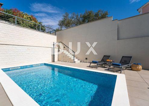 INSEL KRK, STADT KRK - zweistöckige Wohnung mit Garten und Swimmingpool in Meeresnähe. Die 118 m2 große Wohnung besteht aus einem Vordereingang, einem größeren Aufenthaltsraum mit Zugang zu einer großen überdachten Terrasse, einem Schlafzimmer mit Bad, einem Flur, einem zusätzlichen Bad und einem Abstellraum sowie einer Innentreppe im Erdgeschoss Gebäude. Im ersten Stock befinden sich zwei Schlafzimmer, ein Flur, ein Badezimmer, ein geräumiges Wohnzimmer mit Küche und ein Esszimmer mit Zugang zu einer großen überdachten Terrasse mit Blick auf das Meer. Technische Merkmale: hochwertige Bauweise und hochwertige Ausstattung, PVC-Zimmerei mit dreischichtigem Glas, Aluminium-Rollläden mit elektrischer Regulierung, alle Räume klimatisiert mit einem Multisplit-System, Fußbodenheizung in den Bädern, erstklassiges Parkett und keramische Bodenbeläge, einbruchhemmende Türen. Dekorierter Gartenbereich von 157 m2 mit einem Swimmingpool von 22 m2 sowie einer Sonnenterrasse und Sommerküche. Zur Wohnung gehören zwei Parkplätze. Die Entfernung zum Meer und zum Zentrum beträgt ca. 600 Meter. DIE STADT KRK ist heute das administrative, politische, wirtschaftliche und religiöse Zentrum der Insel Krk, die durch ihr repräsentatives mittelalterliches Erbe fasziniert. Es entstand während der venezianischen Herrschaft in diesen Gebieten. In dieser Zeit ragten insbesondere die Frankopani-Fürsten von Krk heraus, denen es durch geschickten politischen Flirt mit Venedig gelang, mehrere Jahrhunderte in Krk zu bleiben. Heute kennen wir Krk als Touristenziel mit außergewöhnlichem kulturellem und künstlerischem Erbe, wo die antike Splendidissima Civitas Curitarum (die prächtige Stadt der Einwohner von Krk) im Einklang mit dem geschäftigen Charakter der Neuzeit lebt. Die ideale geografische Lage ist ein Vorteil, den die Insel Krk als Tourist früher sehr schätzte. Wir sprechen von der Nähe zum Festland, zu dem vor zwanzig Jahren eine Brücke hinzugefügt wurde, die Krk mit dem Festland verbindet und es so noch besser zugänglich macht. Die gute Verkehrsanbindung hat die Insel Krk zu einem beliebten Ausflugsziel gemacht, aber auch umgekehrt: Von der Insel aus lassen sich sinnvolle Tagesausflüge unternehmen. Zum Beispiel ein Ausflug in die Nationalparks Plitvicer Seen und Nordvelebit. Wahre Entdecker werden auf jeden Fall Rijeka – das Zentrum der Gespanschaft Primorsko Goranska – kennenlernen wollen und ihren Aufenthalt in Rijeka mit einem unvermeidlichen Besuch in Opatija – der touristischen „Perle der Adria“ – verbinden. Ein Tagesausflug nach Istrien wird sehr interessant sein. Wir empfehlen Ihnen, im zentralen Teil Istriens zu übernachten und nicht an der Küste! Schließlich ist die Insel Krk durch eine Fährlinie mit drei Inseln verbunden: Rab, Cres, Lošinj, die auch Ziele für Ihre Tagesausflüge sein können. Kehren Sie niemals von der Goldenen Insel zurück, bevor Sie nicht selbst die Trümpfe gesehen haben, die ihr aus der Zeit des Römischen Reiches diesen schmeichelhaften Namen eingebracht haben. Genießen Sie den köstlichen Geschmack von Kvarner-Fisch und den berühmten Kvarner-Garnelen. Zum Insellamm verraten wir Ihnen, dass es am Hofe der römischen Kaiser serviert wurde, wir glauben, dass dies eine ausreichende Empfehlung ist. Das Meer auf der Insel Krk ist extrem sauber! Dieser Anspruch wird am besten durch die sechs blauen Flaggen untermauert, die die Strände der Stadt Jahr für Jahr verdienen, indem sie die hohen Kriterien der Meeresqualität erfüllen, und dann durch die Angebote: Sanitär, Gastronomie, Sport, Freizeit, mit dem obligatorischen Hinweis, dass die Strände zugänglich sind zum Meer für Behinderte eingerichtet. In der Stadt, in der Gegend von Dražica, gibt es einen Strand für Hunde, einen separaten Bereich zum Baden von Hunden, die in der Sommerhitze nach Erfrischung schreien. Die Sauberkeit des Meeres an den Stränden ist unter anderem darauf zurückzuführen, dass es sich bei den Stränden um Kies- oder Felsstrände mit gut ausgestatteten Liegewiesen handelt. Wenn Sie Lust auf Erkundungen und Intimität haben und gleichzeitig wissen, wie man ein Schiff steuert, suchen Sie im Stadthafen nach Mietbooten. Die Küste der Insel in unmittelbarer Nähe der Stadt ist eine Fundgrube versteckter, intimer Kieselbuchten, die zumindest für einen Tag zu Ihrem Privatstrand werden können. Sehr geehrte Kunden, die Agenturprovision wird gemäß den Allgemeinen Geschäftsbedingungen www.dux-nekretnine.hr/opci-uvjeti-poslovanja berechnet