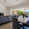 Das elegante einstöckige Haus besteht aus einem offenen Raumkonzept, das Wohnzimmer, Esszimmer und Küche mit Zugang zu einer überdachten Terrasse mit offenem Kamin, drei Schlafzimmern, drei Badezimmern und Abstellraum vereint.