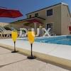 Zahlreiche Ausgaben der Stadt Vodnjan stammen aus verschiedenen historischen Epochen. Gotik, Renaissance und Barock sind bei einem Spaziergang durch die Stadt, die einst ein wichtiges städtisches Zentrum war, auf Schritt und Tritt zu spüren. Das Interessante, das auf jeden Fall hervorsticht, ist die Kirche St. Blaža, dessen Glockenturm der höchste in Istrien ist (62 m). Mildes mediterranes Klima, ausgezeichnetes touristisches Angebot, Nähe zum Meer, ausgezeichnete Mikrolage für ruhiges Familienleben oder Mietobjekte. Diese Villa wurde 2012 auf einem Grundstück von 1027 m² erbaut und besteht aus einem Erdgeschoss und einem Obergeschoss. Das Erdgeschoss besteht aus einem offenen Wohnzimmer mit Küche und Esszimmer, einem Badezimmer und zwei geräumigen Schlafzimmern sowie einer Eingangshalle. Von der Eingangshalle sowie der Küche aus gelangt man in die Räume, von denen einer als Waschküche und der andere als Abstellraum gedacht ist. Sowohl das Wohnzimmer als auch die Küche führen auf eine überdachte Terrasse und einen wunderschön angelegten Garten, der sich ideal zum Genießen von Sommerabenden eignet. Die Treppe führt in die erste Etage, die aus drei Schlafzimmern, einem großen Badezimmer und einem Kleiderschrank besteht. Die Lagerung kann unter der Treppe erfolgen. In jedem Schlafzimmer gibt es Zentralheizung und Klimaanlage. Auf dem umzäunten Grundstück gibt es einen Swimmingpool, einen Grill und ein Gartenhaus mit Sommerküche, Toilette und Abstellraum für Werkzeuge. Der Garten verfügt über einen eigenen Tank für Warmwasser, Gas und Zentralheizung, einen eigenen Absorptionsbrunnen und Rohre für die automatische Bewässerung. Das Haus wird wie auf den Bildern gezeigt möbliert verkauft. Liebe Kunden, dies ist ein ideales Haus für einen Urlaub mit Familie und Freunden oder als Investitionsmöglichkeit im Tourismus. Bei weiteren Fragen können Sie gerne die Agenten anrufen.