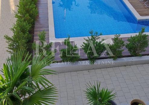 Im zweiten Stock befindet sich eine Wohnung mit zwei Schlafzimmern, zwei Badezimmern, Wohnzimmer, separater Küche, Speisekammer und einem Balkon mit wunderschönem Blick auf das Meer.