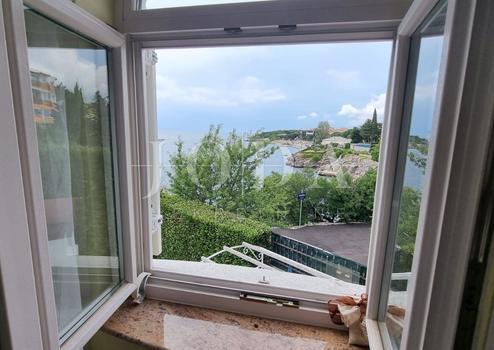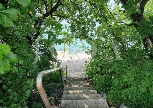In spektakulärer Lage am Meer steht ein freistehendes Haus mit zwei Einfahrten zum Verkauf. Auf der Südseite befindet sich eine große Garage, ein möbliertes Studio-Apartment und ein Heizraum (das Studio wird in der Natur als Sommerküche und Raum genutzt). Geselligkeit).