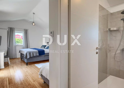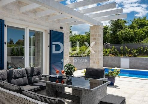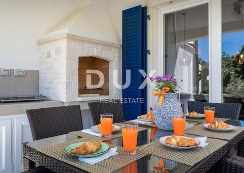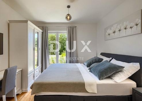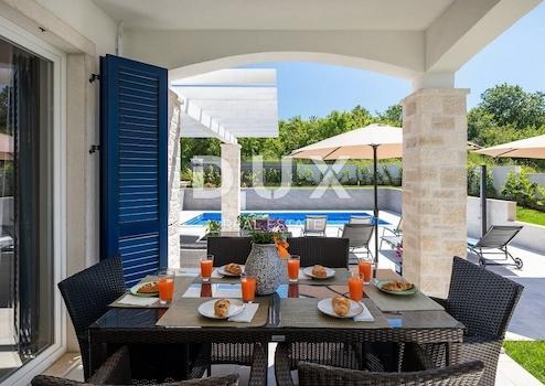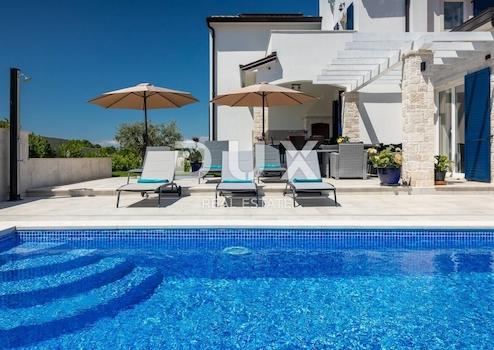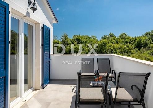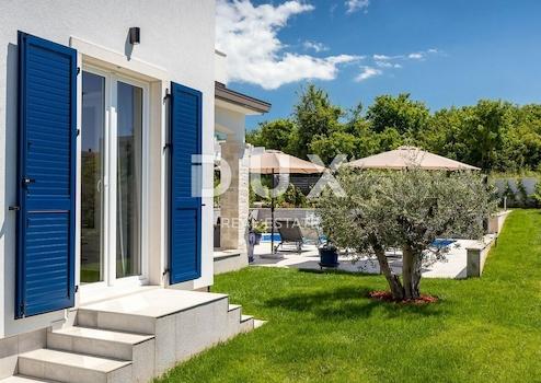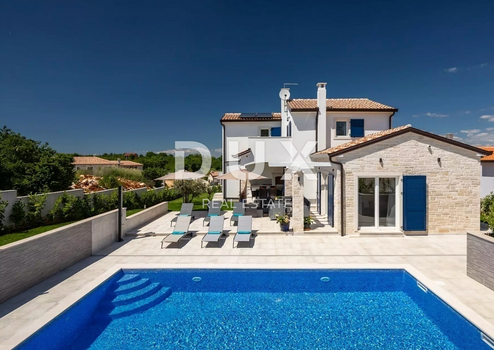 Poreč ist eine Stadt im Herzen der Westküste Istriens. Eine Stadt der Kultur, des Tourismus, des Sports und der Unterhaltung, mehrfach ausgezeichnet für ihre Ordnung und Sauberkeit. Eine Stadt, die auf einzigartige Weise ein reiches kulturelles und historisches Erbe mit den modernsten Annehmlichkeiten eines Top-Touristenziels verbindet. Unweit der Stadt Poreč steht eine Villa in begehrter Lage zum Verkauf. Die Villa mit zeitloser Architektur, teilweise aus Stein mit rustikalen blauen Fensterläden, liegt weit genug von Menschenmassen und Lärm entfernt, aber dennoch in der Nähe aller Einrichtungen, die für einen ganzjährigen Aufenthalt erforderlich sind. Harmonisch geplante Räume, ein modernes Interieur und ein ebenso ansprechendes wie abgestimmtes Äußeres zeigen, wie an jedes Detail bei der Ausstattung dieser Villa gedacht wurde. Die Villa ist als eine Wohneinheit konzipiert, die sich über zwei Etagen erstreckt. Im Erdgeschoss befindet sich ein offener Wohnbereich, der sich auf eine überdachte Terrasse mit Sommerküche und Esszimmer öffnet. Im restlichen Erdgeschoss befindet sich ein Schlafzimmer mit eigenem Bad, ein Abstellraum und eine Toilette. Eine Innentreppe führt in den ersten Stock, wo sich zwei Schlafzimmer befinden, jedes mit eigenem Bad und Zugang zur Terrasse. Es ist mit Klimaanlage, Fußbodenheizung und einer solaren Warmwasserbereitung ausgestattet. Das Grundstück der Villa ist komplett eingezäunt, gärtnerisch angelegt und mit automatischer Bewässerung ausgestattet. Der Hof wird von einem 32 m² großen Swimmingpool mit Sonnendeck dominiert. Das Anwesen ist komplett ausgestattet und möbliert und wird als solches verkauft. Die Lage, die Struktur und der Komfort machen dieses Anwesen ideal für ein friedliches Familienleben, aber auch zu einer erfolgreichen Touristenvermietung.