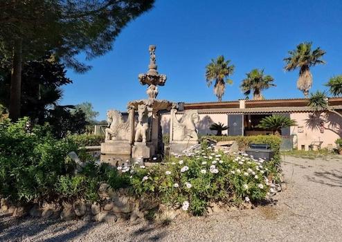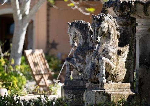 Mittelpunkt des Anwesens ist ein großer alter Springbrunnen mit Pferdeköpfen,