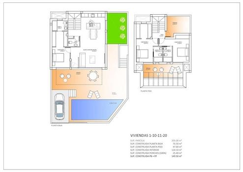 Die Anlage besteht aus 20 wunderschönen und modernen Quattrohäusern - Reihenhäuser, die im Quadrat angeordnet sind und somit alle einen größeren Garten bieten - und alle bieten 3 Schlafzimmern und 3,5 Bäder sowie Privatpool und Kfz-Stellplatz auf dem Grundstück.