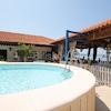 Im Erdgeschoss befindet sich ein freistehendes Gebäude von 120 m², in der Natur ein komfortables Apartment mit zwei Schlafzimmern, eigener Terrasse und Grill, daneben befindet sich ein Swimmingpool.