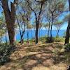 Die Küste ist felsig und über einen kleinen Pfad gelangt man in 5 Minuten zu Fuß an einen Strand.