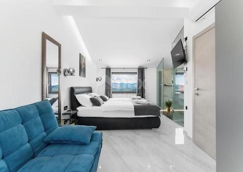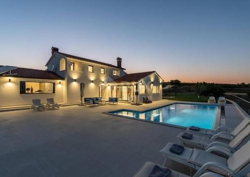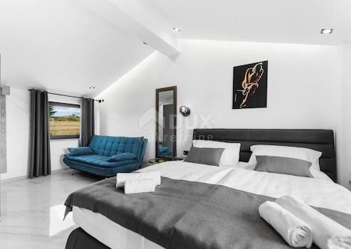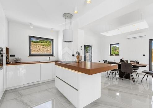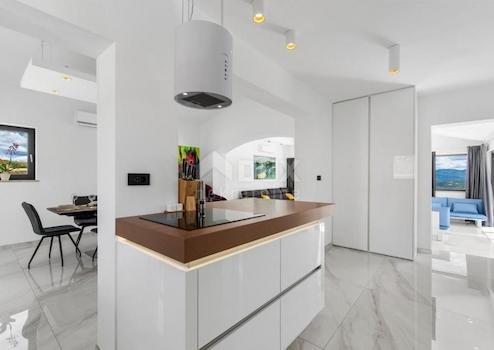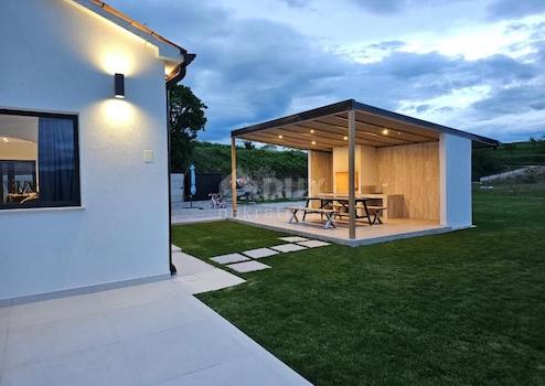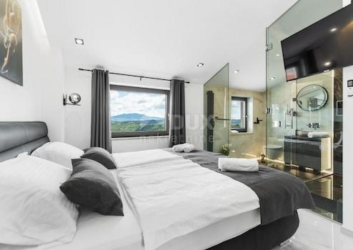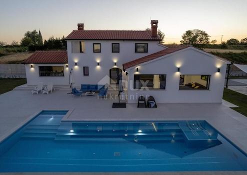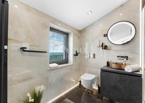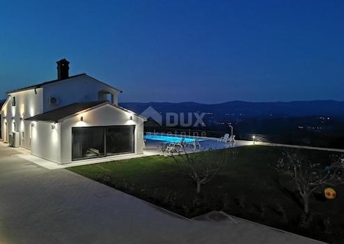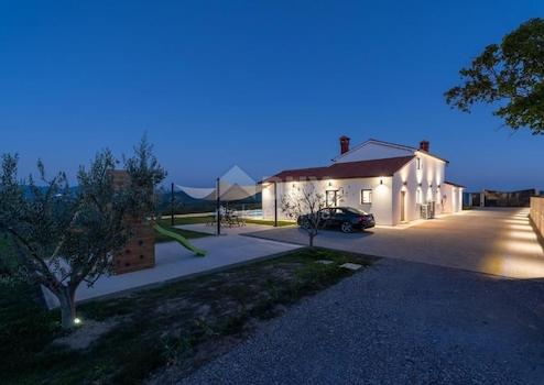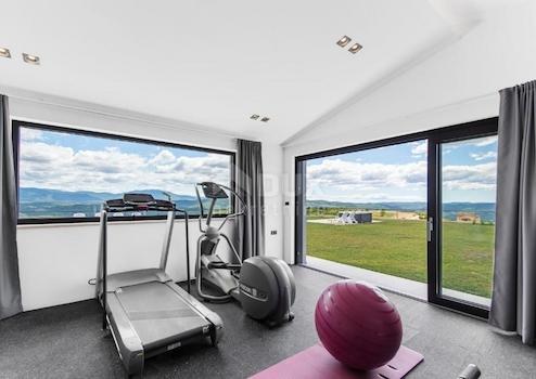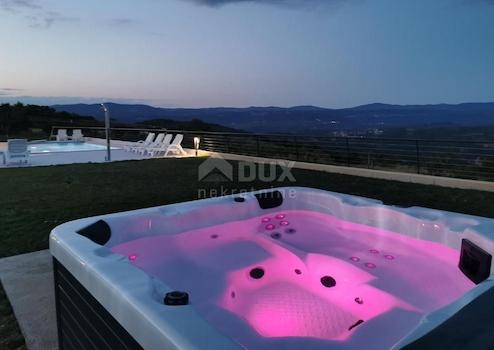 Buzet, eine kleine Stadt auf einem samtigen Hügel, umgeben von mächtigen Steinmauern und gewürzt mit göttlicher autochthoner istrischer Gastronomie. Sie ist weithin als Stadt der Trüffel bekannt, deren Jagdreviere direkt in den Wäldern des Tals des Flusses Mirna liegen. Eines der wertvollsten Merkmale dieser Region ist sicherlich ihre unberührte Natur. Wunderschöne Naturlandschaften, die Küsten- und Berglandschaft mit zahlreichen Hügeln und dem Tal des Flusses Mirna verschmelzen, bieten einzigartige Ausblicke. Das Gebiet von Buzeština liegt im nördlichsten Teil Istriens im Landesinneren, im Gebiet zwischen drei großen Stadtzentren: Rijeka, Triest und Pula. Das Gebiet ist sehr vielfältig, von 10 m bis über 1000 m Seehöhe. Buzet umfasst zusammen mit der Umgebung, bekannt als Buzeština, eine Fläche von 165 km2. In der Nähe von Buzet steht auf einer Lichtung mit schöner Aussicht eine Villa mit großem Garten zum Verkauf. Die Villa besteht aus Erdgeschoss und Obergeschoss. Im Erdgeschoss gibt es sogar zwei Wohnzimmer mit wunderschönem Blick auf die Natur und den Pool, Küche und Esszimmer, Toilette und Fitnessraum. Im Obergeschoss befinden sich 3 große Schlafzimmer mit Badezimmern. Die Villa verfügt außerdem über eine Ladestation für Elektroautos, Fußbodenheizung und -kühlung. Das Wohnzimmer hat einen schönen Ausgang zur Terrasse und zum Hof. Im komplett umzäunten Hof gibt es außerdem einen überdachten Grill mit großem Tisch und Whirlpool. Ideale Immobilie für Touristenvermietung oder luxuriöses Familienleben.