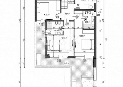 Es erstreckt sich elegant durch Erdgeschoss und Obergeschoss. Im Erdgeschoss befindet sich ein geräumiges Wohnzimmer, das mit einem offenen Esszimmer und einer Küche mit Zugang zu einer überdachten Terrasse kombiniert ist, ein Schlafzimmer mit eigenem Bad, eine Toilette und ein Hauswirtschaftsraum mit Waschküche und Abstellraum . Im ersten Stock befinden sich drei Schlafzimmer mit eigenen Bädern, ein Wellnessbereich mit Sauna und Dusche sowie eine großzügige Terrasse mit installierten Installationen für einen Whirlpool mit Meerblick.