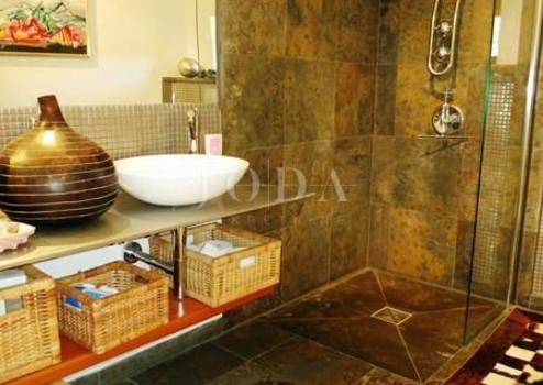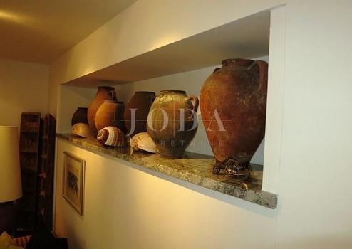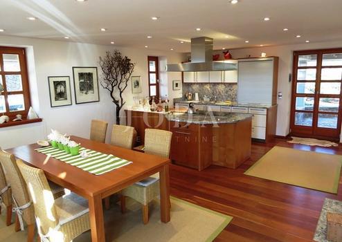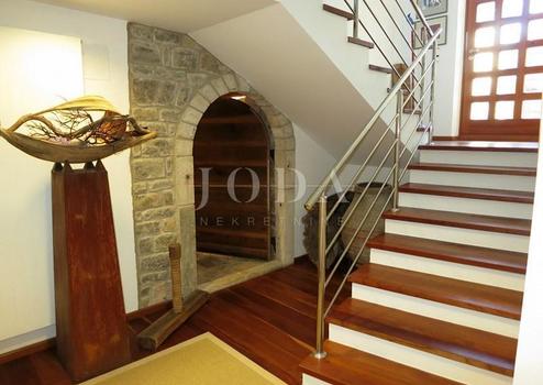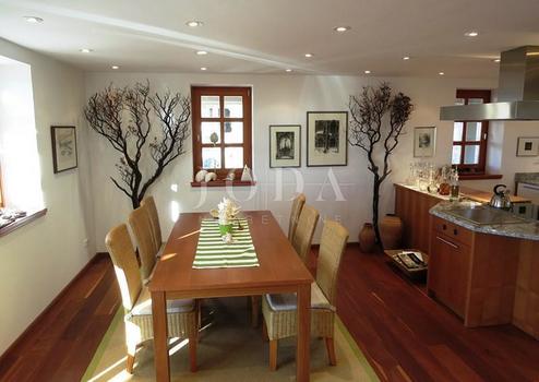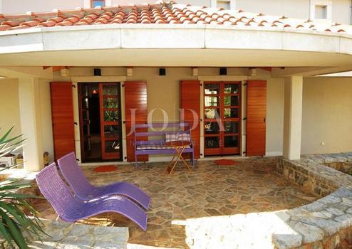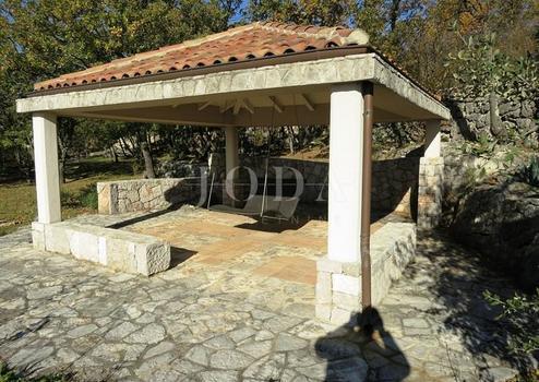 Schöne Steinvilla mit zwei zusätzlichen Gebäuden auf einem großen Anwesen in Sotovento Bereich auf der Insel Krk. Die Villa besteht aus drei Etagen. Im Untergeschoss befindet sich eine Garage, Abstellraum, Weinkeller im authentischen Stil, Bad und Heizraum. Das Erdgeschoss besteht aus einer Küche und Essbereich, einem Wohnzimmer mit Kamin, Bad, einem Raum zum Entspannen und Arbeitsraum. Im Obergeschoss befindet sich ein großes Schlafzimmer, ein Ankleidezimmer, WC, Bad und eine geräumige Terrasse mit einem herrlichen Blick auf das Meer. Das Haus wurde komplett renoviert und mit hochwertigen Möbeln eingerichtet. Es ist stilvoll, mit vielen Design-Details und natürliche Materialien, mit sorgfältig geplanten Beleuchtung für mehr entspannten und komfortablen Aufenthalt eingerichtet. Auf dem Grundstück gibt es zwei zusätzliche kleine Steinhäuser. Einer von ihnen ist als Studio für Gäste organisiert, während der andere als Sommerküche mit Kamin und Toilette eingerichtet ist. Alle drei Gebäuden haben Zugang zur Terrasse, mit Grill. Erhöht gelegen über dem Haus, gibt es eine Sommerterrasse, die freie Sicht auf das gesamte Anwesen, Panoramablick auf das Meer und die Insel Cres bietet. Das gesamte Anwesen bietet viel Komfort und Luxus, und ist ein idealer Ort für Urlaub über das ganze Jahr.