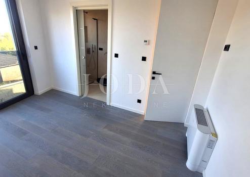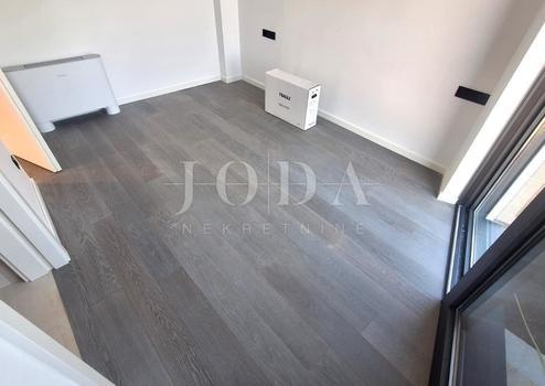 Die Wohnung besteht aus einem Flur, einem Wohnzimmer mit Küche und Essbereich, zwei Schlafzimmern, zwei Badezimmern und einem Abstellraum. Es befindet sich im ersten Stock. Die Wohnung hat auch einen Abstellraum und zwei Parkplätze. Es wird mit Klimaanlage und hochwertiger Tischlerei ausgestattet, und der Eigentümer kann die Details der Innenausstattung auswählen.