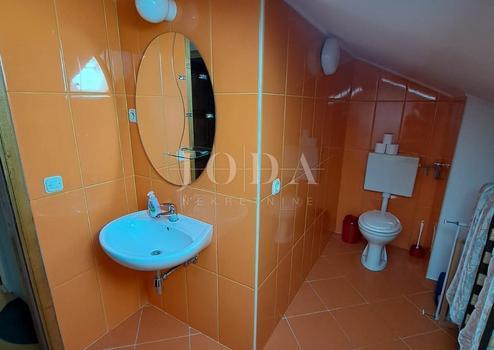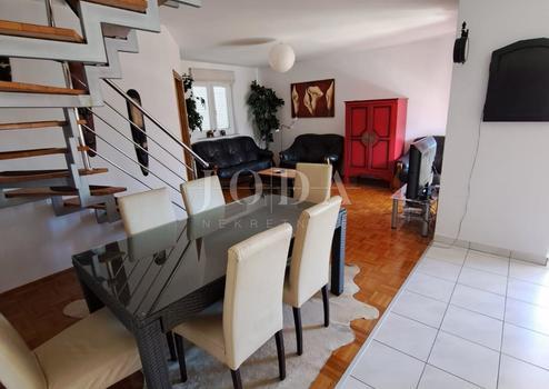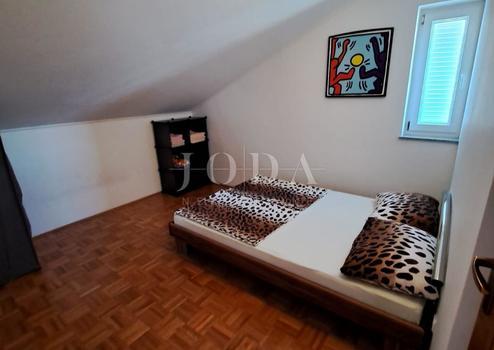 Die Wohnung erstreckt sich über das Erdgeschoss und das hohe Dachgeschoss eines Wohnhauses mit insgesamt vier Wohneinheiten. Die Wohnung hat einen Garten von 57m2 und zwei Parkplätze. Im ersten Stock befinden sich ein Wohnzimmer, eine Küche und ein Esszimmer sowie ein Badezimmer und eine Loggia. Eine Innentreppe führt in den zweiten Stock im Dachgeschoss, das aus drei Schlafzimmern und einer Toilette besteht. Die Wohnung ist komplett möbliert und ausgestattet und wird auch so verkauft. Es hat PVC Tischlerei und eine Klimaanlage auf jeder Etage. Heizen ist auch mit festen Brennstoffen möglich. Die Immobilie befindet sich in einer großartigen Lage nahe dem Zentrum von Krk und allen notwendigen Annehmlichkeiten. Gelegenheit!