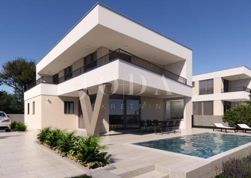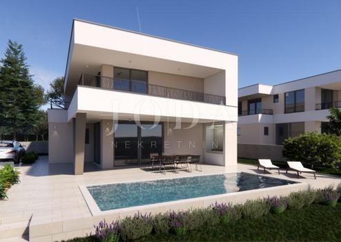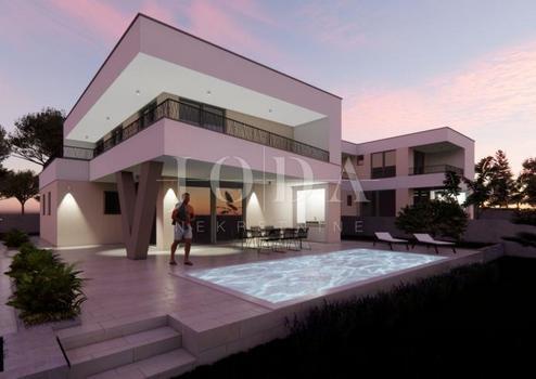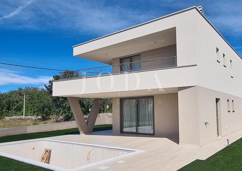 Zum Verkauf steht eine im Bau befindliche moderne Villa in gut erreichbarer Lage, nur zwanzig Autominuten vom Zentrum von Krk und nur wenige Autominuten vom Strand entfernt.
