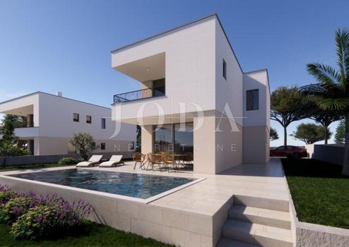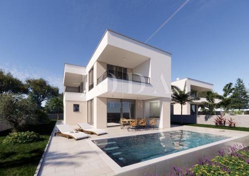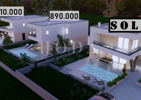 Zum Verkauf steht eine im Bau befindliche moderne Villa in gut erreichbarer Lage, nur zwanzig Autominuten vom Zentrum von Krk und nur wenige Autominuten vom Strand entfernt.