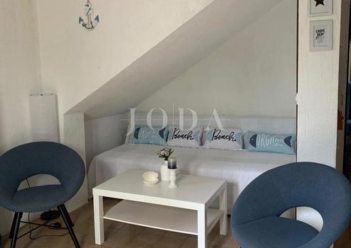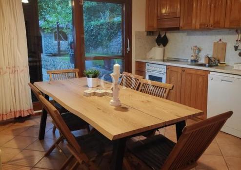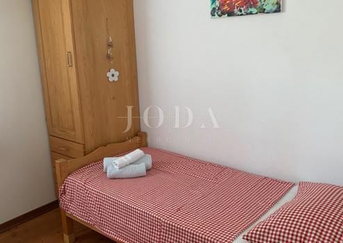 Es besteht aus einer größeren Wohnung und zwei kleineren identischen Wohnungen, wobei sich die größte Wohnung in einem separaten Gebäude befindet. Die größte Wohnung ist sehr geräumig und hat 100m2 Wohnfläche. Es verfügt über eine offene Küche und ein Wohnzimmer sowie drei Schlafzimmer und ein Badezimmer. Eine Innentreppe im Flur führt zum Dachboden, wo sich ein Schlafzimmer befindet. Die Zentralheizung für das Haus befindet sich im Dachgeschoss und wird mit Strom betrieben. Eine größere Wohnung von 50 m2 befindet sich auf der anderen Seite des Gebäudes und verfügt über einen separaten Eingang und eine Terrasse. Es besteht aus einem offenen Wohnzimmer und einer Küche, einem Badezimmer und zwei Schlafzimmern. Im ersten Stock befinden sich zwei kleinere Wohnungen, die einen identischen Grundriss haben. Die Fläche beträgt 25 m2 und beide bestehen aus einem Wohnzimmer und einer Küche, einem Badezimmer und einem Schlafzimmer. Diese Apartments verfügen auch über eine Terrasse. Die Apartments sind voll klimatisiert. Im Erdgeschoss gibt es ein separates Außenbad, eine schöne überdachte und große Terrasse mit Sommerküche und gemauertem Grill. Der Garten ist sehr schön gestaltet. Zur Aufbewahrung von Werkzeugen und anderen Dingen steht ein Gartenabstellraum zur Verfügung. Das Haus hat auch Parkplätze für fünf Autos. Es befindet sich in einer großartigen Lage. Das Objekt eignet sich ideal zur Vermietung. Gelegenheit!