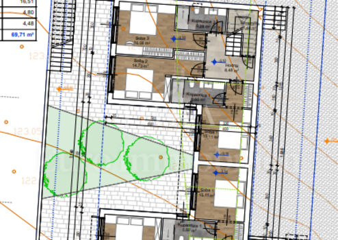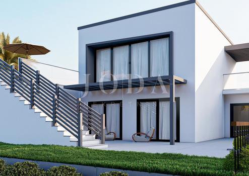Doppelhaushälfte mit einer Gesamtfläche von 146 m2 mit ca. 250 m2 Garten. Das Haus befindet sich derzeit im Bau und wird aus drei Etagen bestehen. Das Erdgeschoss wird über drei Schlafzimmer, einen Flur und zwei Badezimmer sowie einen Abstellraum verfügen. Eine Innentreppe führt in den ersten Stock, wo sich ein geräumiges Wohnzimmer mit Küche und Essbereich, Flur und Toilette befindet. Innentreppe führt zur Dachterrasse mit Jacuzzi. Die Dachterrasse bietet einen Panoramablick auf das Meer. Der gepflegte Garten verfügt über einen privaten Pool mit Sonnendeck, Sommerküche mit Grill und zwei Parkplätze.