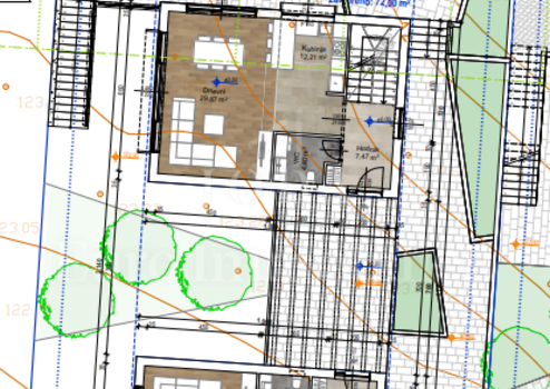 Modernes Projekt, hochwertige Konstruktion und Ausstattung, ruhige Lage in einer wunderschönen Nachbarschaft, umgeben von Einfamilienhäusern und Villen, ca. 2 km vom Meer entfernt.