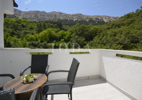 In ruhiger Lage im Grünen, nur wenige Autominuten von Baška entfernt, befindet sich eine Doppelhaushälfte mit fünf Wohnungen. Das Haus hat eine Wohnfläche von 288 m2 und erstreckt sich über drei Etagen. Im Erdgeschoss befindet sich eine geräumige Wohnung von 100 m2 mit Wohnzimmer, Küche und Esszimmer, drei Schlafzimmern und einem Badezimmer. Das Erdgeschoss verfügt über einen Ausgang zur Terrasse. Die erste und zweite Etage haben die gleiche Raumaufteilung, jede Etage besteht aus zwei Wohnungen von 45 m2. Die Wohnungen bestehen aus einer Küche, zwei Schlafzimmern, einem Badezimmer und einem Balkon. Das Haus ist klimatisiert, gepflegt und verfügt über eine Taverne. Im Hof sind mediterrane Pflanze und der bietet Platz für Parken von mehreren Fahrzeugen. Das Haus ist zur Vermietung kategorisiert, es werden vier Wohnungen vermietet, sodass der zukünftige Eigentümer das bereits etablierte Geschäft übernehmen kann!