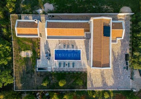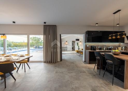 Die kleine Stadt Labin liegt an der Ostküste Istriens auf einem 320 m hohen Hügel, nur 3 km vom Meer entfernt. Das Klima in Labin ist mediterran. Die Altstadt liegt auf dem Hügel und der andere Teil der Stadt darunter ist als Podlabin bekannt. Labinština ist der geografische und historische Name des östlichen Teils Istriens. Seine Fläche beträgt etwa 220 km² und es gibt insgesamt 84 Siedlungen. Eine wunderschöne Villa zum Verkauf in der Nähe von Labin, in unmittelbarer Nähe aller notwendigen Annehmlichkeiten. Ein wunderschön und dezent dekorierter Garten mit integrierter Bewässerungsanlage und Olivenbäumen führt Sie ins Erdgeschoss, wo sich eine Küche mit Esszimmer und ein Wohnzimmer befinden, das im Anbau zum Wellnessraum führt, wo sich eine Sauna befindet Für völlige Entspannung und Erholungssuchende gibt es ein Fitnessstudio, in dem sie in Form bleiben können. Darüber hinaus gibt es noch ein Schlafzimmer mit angeschlossenem Badezimmer und ein weiteres zusätzliches WC. Die Glasfelsen, die sich durch das gesamte Erdgeschoss erstrecken, blicken in Richtung Labin und sorgen für viel Sonnenlicht, um sich vollkommen in die Natur und das Grün einzufügen. Über die Treppe gelangen Sie in den ersten Stock, wo sich drei weitere Schlafzimmer befinden, ebenfalls jeweils mit eigenem Bad. Eines der Zimmer bietet Zugang zu einer Terrasse, die absolute Privatsphäre und Intimität bietet. Nutzen Sie in den heißen Sommermonaten den Strand des 10x4-Pools zur vollständigen Erfrischung und Entspannung. Dank der Wärmepumpe können Sie den Pool auch an kälteren Tagen nutzen. Außerdem gibt es am Pool eine unverzichtbare Sommerküche mit einer Bruttofläche von 30 m2, die von Glaswänden umgeben ist, sodass Sie nichts von der Natur trennt. Unterhalb des Pools befindet sich ein 30 m² großer Maschinenraum. Für das Heiz- und Kühlsystem nutzt das Haus eine Fußbodenheizung im Erdgeschoss und einen Fan-Coil im gesamten Rest des Hauses – modernste Heiz- und Kühlsysteme, die für vollen Komfort sorgen. Gerade die Möglichkeit, das System von Heizen auf Kühlen und umgekehrt umzustellen, macht Fan-Coil-Geräte in letzter Zeit sehr beliebt. Die Immobilie befindet sich in der Endphase der Einrichtung, die Isolierung ist hervorragend, alles ist mit hochwertigen Materialien ausgestattet, um Ihnen als zukünftigem Eigentümer alles zu bieten, was Sie für ein komfortables Leben benötigen, oder es kann einfach als hervorragende Investition dienen Touristenvermietung, die eine großartige Gelegenheit für eine schnellere Rendite der investierten Mittel darstellt!