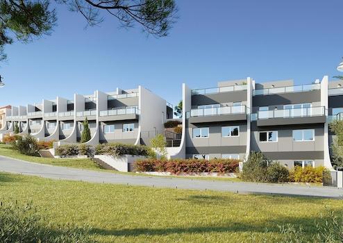 Die Reihenhäuser und Bungalows verfügen über 3 Schlafzimmer, 3 Bäder, einen Waschraum und einen offenen Wohn-Essbereich mit angeschlossener Küche. Die Aussicht in Richtung der privaten Gärten, der gemeinschaftlichen Außenanlagen, der umgebenen Landschaft, der Skyline von Benidorm und teilweise direkt aufs Meer, ist ein Highlight dieses Projektes.