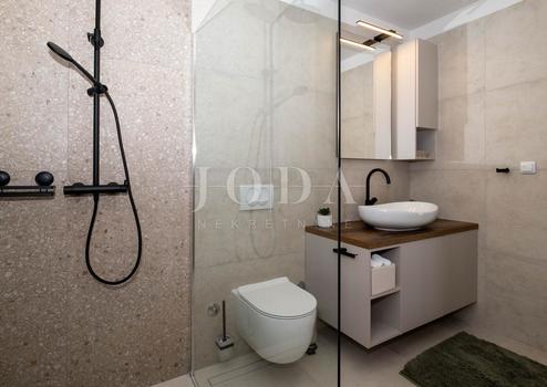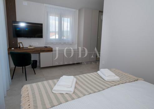 In einem ruhigen Teil des Landesinneren der Insel Krk steht eine Villa von 160 m2 gebaut auf einem Grundstück von 636 m2 zum Verkauf. Der Wohnbereich der Villa umfasst das Erdgeschoss und den ersten Stock. Im Erdgeschoss ist eine Eingangshalle, ein Schlafzimmer mit Bad, eine Küche mit Esszimmer und Wohnzimmer, eine Toilette und einen Abstellraum. Im ersten Stock befinden sich zwei Schlafzimmer und zwei Badezimmer sowie eine großzügige Terrasse. Im angelegten Garten ist ein beheizter Pool und eine überdachte Terrasse mit Sommerküche. Alle Räume im Haus sind klimatisiert, das Haus verfügt über Videoüberwachung und Alarmanlage und der Garten verfügt über eine automatische Bewässerung.