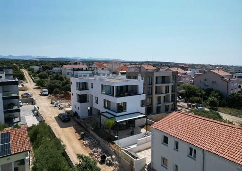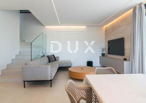 PAG, MANDRE - dreistöckige Wohnung, 2. REIHE ZUM MEER!!! 190m2 mit Blick auf Meer und Pool + Umgebung Die Wohnung befindet sich in ruhiger und friedlicher Lage und dennoch in unmittelbarer Nähe aller notwendigen Annehmlichkeiten für ein qualitativ hochwertiges Leben. Die Wohnung ist nach Süden ausgerichtet und verfügt über große Glaswände in allen Räumen auf der Südseite, so dass man auch von dort aus einen Blick auf das Meer hat. Die Wohnung besteht aus 3 Etagen, die durch eine Innentreppe verbunden sind: - Untergeschoss - -Erdgeschoss - besteht aus einem großen Wohnzimmer, das als großzügiger offener Raum mit Zugang zur Terrasse und Umgebung mit Swimmingpool, Küche, 4 Schlafzimmer, 3 Badezimmer. - 1. Etage - Das Gebäude, in dem sich die Wohnung befindet, ist gut gebaut und luxuriös ausgestattet, alle verbauten Materialien, Boden- und Wandbeläge entsprechen den höchsten Standards. - Fassadensteinwolle 10 cm dick - Fußbodenheizung - hochwertige Aluminiumschreinerei. Das Gebäude, in dem sich die Wohnung befindet, besteht aus insgesamt 9 Wohnungen. Das Gebäude verfügt über einen Aufzug, die Wohnung verfügt über 1 Parkplatz in der Garage und 1 Parkplatz im Freien. Sauberes und ordentliches Anwesen. Sicherlich eine schöne Immobilie für ein luxuriöses Familienleben, aber auch als Investition in Form von Elite-Tourismus geeignet. Dieses Anwesen ist 450 m Luftlinie vom Meer und dem Strand entfernt, bzw. 1,4 km mit dem Auto (ca. 3 Minuten). EINE EINZIGARTIGE IMMOBILIE IN TOLLER LAGE, DIE IHRE AUFMERKSAMKEIT AUF jeden Fall wert ist!!!