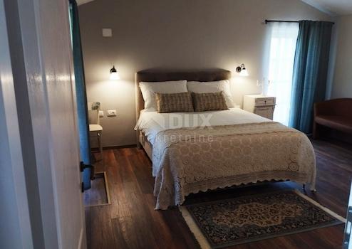Eines der schönsten Juwelen Istriens ist die kleine Stadt Bale an der Westküste Istriens. Diese historische Steinstadt liegt auf einem Hügel umgeben von Olivenhainen und Weinbergen und ist 5 Kilometer vom Meer und einer unberührten Küste entfernt. Der 45. Breitengrad verläuft durch die Gemeinde Bale, also ihren südlichsten Teil, was bedeutet, dass sie sich am idealsten Ort befindet – auf halber Strecke zwischen dem Äquator und dem Nordpol. Die durchschnittliche Jahrestemperatur in Bale beträgt 14 Grad Celsius und es gibt durchschnittlich 2.400 Sonnenstunden pro Jahr. Nur wenige Autominuten von Bal entfernt steht dieses wunderschöne, komplett renovierte Steinhaus zum Verkauf. Es liegt in einer ruhigen Siedlung, die ein idealer Ort zum Entspannen in Ruhe und Stille und gleichzeitig in der Nähe aller Annehmlichkeiten ist. Rovinj, das touristische Juwel Istriens, ist nur wenige Autominuten entfernt. Die Fläche dieses Steinhauses beträgt 200 m2 und es befindet sich auf einem Grundstück von 880 m2. Im Erdgeschoss des Hauses gibt es ein dekoriertes Wohnzimmer mit hervorgehobenen und erhaltenen Details eines traditionellen istrischen Hauses, eine Gästetoilette, eine Küche mit Esszimmer und Zugang zu einem schönen Garten. Im Obergeschoss des Hauses befinden sich zwei Schlafzimmer, jedes mit eigenem Bad, während eines der Schlafzimmer einen Ausgang zur Sterna – einem traditionellen istrischen Brunnen – und einen Ausgang zum Garten hat. Der Waschraum ist vom Wohnteil der Immobilie getrennt, was sich ideal für eine touristische Vermietung eignet. Neben dem Haus befindet sich eine Garage, während der großzügige Hof ausreichend Platz zum Abstellen mehrerer Autos sowie die Möglichkeit für verschiedene Aktivitäten an der frischen Luft bietet. Dies ist eine ideale Immobilie für das Familienleben, aber auch für die Vermietung zu touristischen Zwecken.