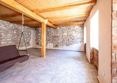 Ein Haus besteht aus Erdgeschoss und Dachgeschoss und ist komplett neu renoviert. Im Erdgeschoss des Hauses gibt es eine Küche, ein Esszimmer, ein Wohnzimmer mit Kamin, eine Toilette, während sich im ersten Stock (Dachgeschoss) zwei Schlafzimmer und ein Badezimmer mit Sauna befinden.