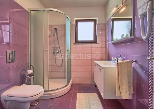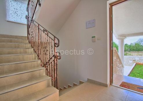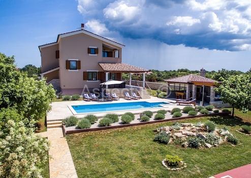 Svetvicenat, neues Haus 294m2 mit Pool und grossem Garten von 1900m2. Das Haus liegt am Rande eines kleinen Dorfes, wo es einen schönen Blick auf die natürliche Vegetation hat und Privatsphäre zum Entspannen bietet. Die Villa besteht aus einem Untergeschoss, Erdgeschoss und ersten Stock. Das Untergeschoss besteht aus einem multifunktionalen Raum, Fitness und andere sportliche Aktivitäten und einem Heizungsraum, der für die Zentralheizung sorgt. Das Erdgeschoss besteht aus Flur, Küche, Esszimmer, Wohnzimmer, einem Schlafzimmer mit eigenem Bad und ein Gäste-WC, Flur für Waschmaschine und Trockner. Die erste Etage besteht aus drei Schlafzimmern, und jedes Zimmer hat einen Vorraum und ein Badezimmer. Eines dieser Zimmer hat Ausgang zu einer Lodge von 7m2 mit Blick auf den Pool und das Meer in der Ferne. Im Garten des Hauses befinden sich Kinderspielplatz Multifunktionsgrösse 7, das aus Schaukeln, Rutschen, Klettergerüsten und einigen anderen Inhalte wie Minigolf-6 Löchern, Multifunktionsplatz (16x8m) Fussball, Basketball, Volleyball, Jacuzzi 2,15 x 2,15 m für 5 + 1 Personen (überdacht) und Teils Rasenbewässerung.
