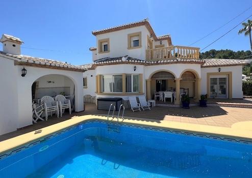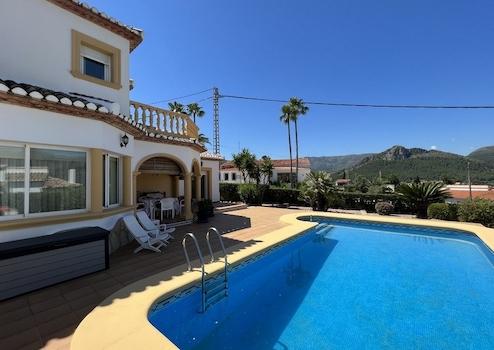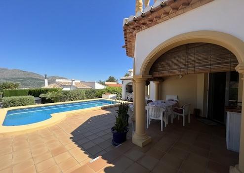 Makellose Villa mit drei Schlafzimmern und zwei Bädern in der Urbanisation El Aspre in Orba mit Gaszentralheizung, Klimaanlage, Pool mit Sommerküche und gesichertem Parkplatz für ein Auto.