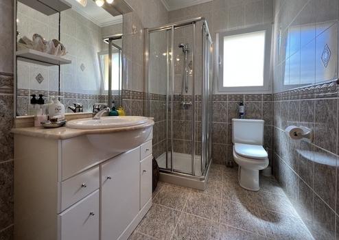 Das Anwesen verteilt sich auf zwei Etagen auf einem ebenen Grundstück. Das Erdgeschoss besteht aus einem offenen Wohn-/Essbereich, einer voll ausgestatteten Küche mit separater Speisekammer, einem Doppelschlafzimmer mit Einbauschränken und einem Deckenventilator sowie einem Duschbad. Von der Lounge und dem Schlafzimmer haben wir Zugang zu einer überdachten Terrasse mit Blick auf die Berge und den Pool, die auch von einer Außenküche profitiert. Eine Innentreppe führt in den ersten Stock, wo sich die beiden anderen Doppelzimmer mit Einbauschränken und Klimaanlage sowie ein Familienbadezimmer mit Dusche befinden. Beide Schlafzimmer haben Zugang zu einer Terrasse mit Blick auf den Garten und die Berge.