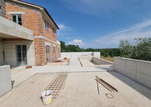 In Sveti Lovreč, 13 km von Vrsar und Poreč und 7 km vom Lim-Kanal entfernt, steht dieses schöne Haus mit Swimmingpool und Garage zum Verkauf. Auf dem Grundstück von 1171 m2 befindet sich ein Neubau mit Schwimmbad und Garage mit einer Gesamtbruttofläche von 242,41 m2. Die Nettowohnfläche des Hauses mit Terrassen beträgt 210,51 m2, die Garage mit Terrasse hat eine Gesamtfläche von 40,61 m2. Die Garage ist für zwei Autos ausgelegt.