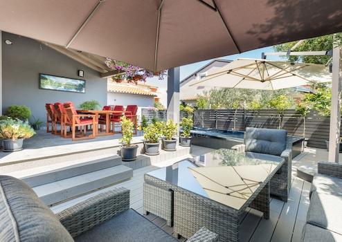 In einer ruhigen Straße im schönen und begehrten Štinjan befindet sich diese hochwertige private einstöckige Villa, die Ihre Aufmerksamkeit verdient. Die Gesamtquadratfläche beträgt 145m2 Wohnfläche. Es lässt seine Besucher dank des modernen und zeitlosen Dekorationsstils, der sich sowohl im Inneren der Villa als auch im Außenbereich erstreckt, gleichgültig. Die Villa besteht aus 2 geräumigen Schlafzimmern, jedes mit eigenem Bad. Eines der Schlafzimmer ist ein Hauptschlafzimmer mit einem geräumigen Badezimmer, das über eine eigene elektrische Fußbodenheizung sowie einen größeren Einbauschrank verfügt. Der Rest der Villa wird Sie mit seiner Leichtigkeit und dem Gefühl von Massivität bezaubern. Im größeren „Open Space“-Bereich gibt es ein geräumiges Wohnzimmer, dann ein größeres Esszimmer und eine moderne, voll ausgestattete Küche mit sorgfältig ausgewählten Elementen eines bekannten italienischen Designers, der Eigentümer eines der renommierten Innenräume ist Designportale. Neben der Verwendung hochwertiger Materialien beim Bau der Villa sowie sorgfältig ausgewählter Materialien im Innenbereich. Die Besitzer haben auf jedes Detail geachtet. Jedes der Zimmer ist mit intelligenten Klimaanlagen ausgestattet, es gibt aber auch einen modernen Holzkamin, ideal für die Wintermonate und sicher zum Heizen des gesamten Wohnraums der Villa. Das Grundstück der Villa ist vollständig eingezäunt und nicht einsehbar, aber was Sie sofort erkennen können, ist, wie die Innen- und Außengestaltung aufeinander abgestimmt ist. So gibt es im umzäunten Hof einen Parkplatz für 3 Autos, der durch ein automatisches Schiebetor mit Sensoren zugänglich ist, sowie einen Außenwhirlpool zum Entspannen nach einem aktiven Tag. Es gibt auch eine überdachte Außenterrasse mit einer Sommerküche mit Grill, ideal für die Unterhaltung von Freunden und Familie. Bei der Gestaltung des Gartens wurde ein moderner Ansatz gewählt, der ausreichend Grün bietet, aber leicht zu pflegen ist, ohne dass der Rasen häufig gemäht werden muss. Ebenso bezaubernd ist die Lage der Villa. Štinjan ist bekannt für seine Ruhe, aber auch für seine wunderschönen langen Strände mit zahlreichen Unterhaltungsmöglichkeiten. So gibt es von Štinjan über Valbandon, Fažana und Peroj eine landschaftlich gestaltete Küste und zahlreiche Badegebiete mit einem Rad- und Wanderweg mit Blick auf den Sonnenuntergang und die berühmten Brijuni-Inseln. Entlang der gesamten Wanderung gibt es viele bekannte Cafés und Restaurants direkt am Meer. Einer der berühmtesten Strände in Štinjan, bekannt als Hidro Baza, verbirgt eine Vielzahl von Einrichtungen wie einen Basketballplatz, Beachvolleyball, grüne Rasenflächen und einen kleinen örtlichen Hafen. Zusätzliche Informationen: * Pula ist nur 6 km entfernt * Restaurant 1,4 km * Strand 1,5 km * Fažana 4 km * Die Villa verfügt über einen eigenen Brunnen Für weitere Fragen können Sie uns gerne kontaktieren!