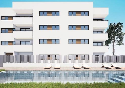 Appartements mit 2 Schlafzimmern, 2 Bädern, Klimaanlage, Fußbodenheizung, Kfz-Stellplatz und Gemeinschaftspool nur 700 m vom Strand