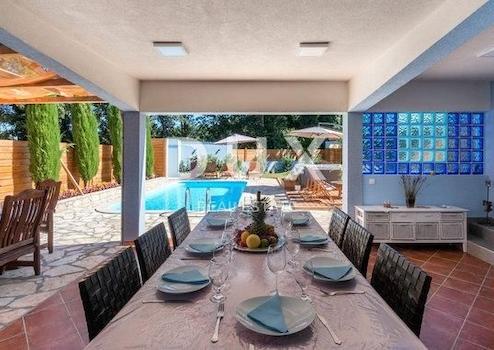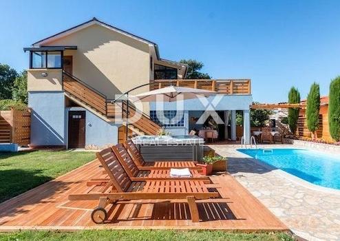 ISTRIEN, LOBORIKA – In der Nähe der Stadt Pula, in einer kleinen Siedlung namens Loborika, befindet sich eine hochwertige Familienvilla, die Ihre Aufmerksamkeit verdient. Am Ende einer Sackgasse und umgeben von natürlichem Grün liegt diese hochwertige Familienvilla mit einer Gesamtwohnfläche von 233m2 aufgeteilt auf zwei Etagen. So gibt es im Erdgeschoss dieser warmen Villa ein größeres Wohnzimmer mit Esszimmer und Küche, sonnig mit Tageslicht. Vom selben Bereich aus gibt es einen Ausgang zu einem gepflegten Garten voller mediterraner Pflanzen und einer großen überdachten Terrasse, ideal zum geselligen Beisammensein und zur Unterhaltung von Freunden und Familie. Im Erdgeschoss befinden sich außerdem 4 geräumige Schlafzimmer und 4 Badezimmer, eines davon ist ein Gästebad, das vom Innenhof der Villa aus zugänglich ist. Der Zugang zum Obergeschoss erfolgt über eine Außentreppe, wodurch es als völlig separater Teil der Villa mit zwei weiteren Schlafzimmern, einem Gemeinschaftsbad, einer Küchenzeile und einem geräumigen Wohnzimmer mit Billardtisch und einer Terrasse mit Blick auf die Landschaft fungiert. Das gleiche Design zieht sich durch die Verwendung von Holz und Stein durch die gesamte Villa. Der 743 m² große Garten ist vollständig eingezäunt und nicht einsehbar, sodass Ruhe und Privatsphäre gewährleistet sind. Der Garten verfügt über einen Swimmingpool sowie einen Whirlpool im Freien, der zum Entspannen einlädt. Der Rest der 532 m² ist mit einem gepflegten grünen Garten mit vielen Blumen in verschiedenen Farben geschmückt und bietet seinen zukünftigen Eigentümern somit eine ideale Gelegenheit, dem hektischen Stadtleben und dem Lärm zu entfliehen. Die überdachte Sommerküche wird sicherlich nicht unbemerkt bleiben, ideal für Sommerabende und das späte Trinken einer Flasche Ihres Lieblingsweins.